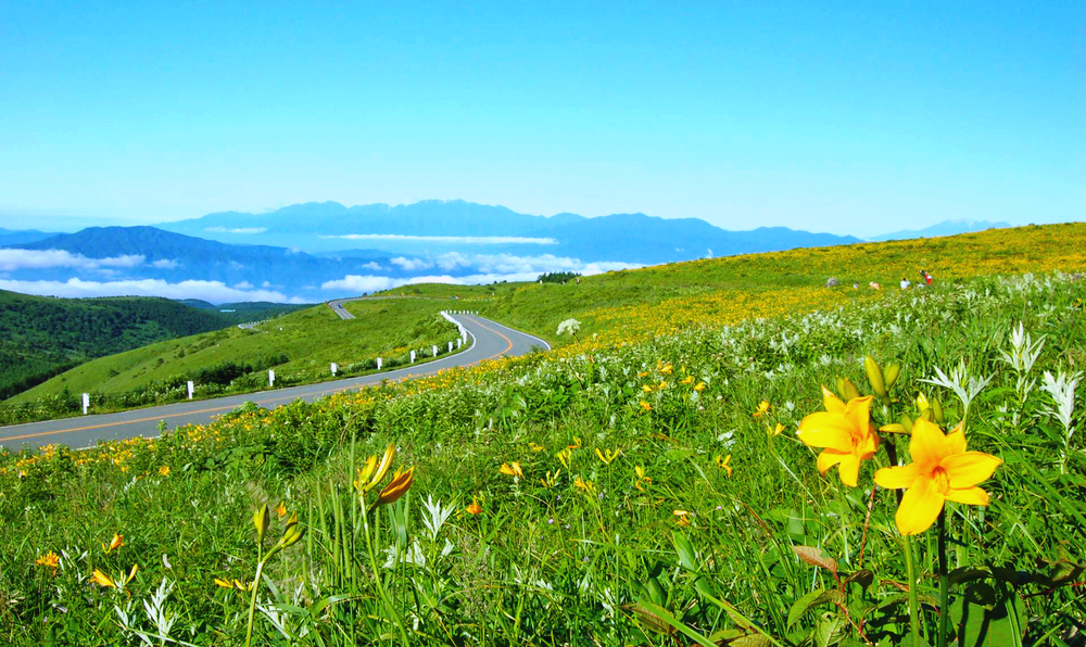 신유 온천이 해발 1350m, 야쓰가다케고원이 해발 1000m 이상이라서 봄은 더디고 여름에도 서늘한 쾌적함이 지속됩니다.