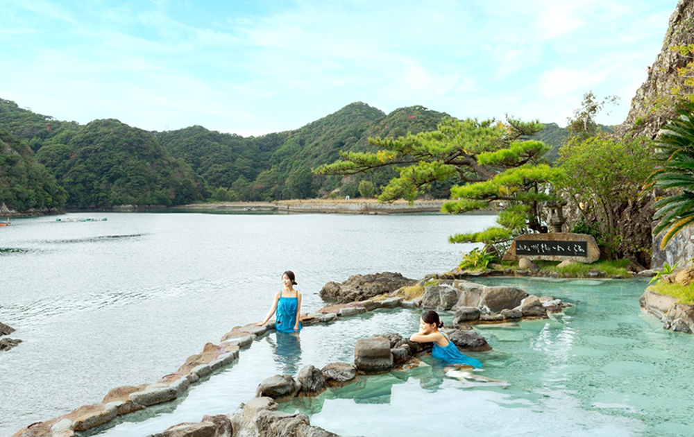 특히 이 온천섬의 존재가 무엇보다 압도적인 건 해수면과의 일체감이 돋보이는 비경의 노천탕인데 암석군으로 둘러싸여 바다로 돌출한 자연 용출 유황온천의 신비감이 더해지죠. (물론 안전에는 문제가 없습니다)