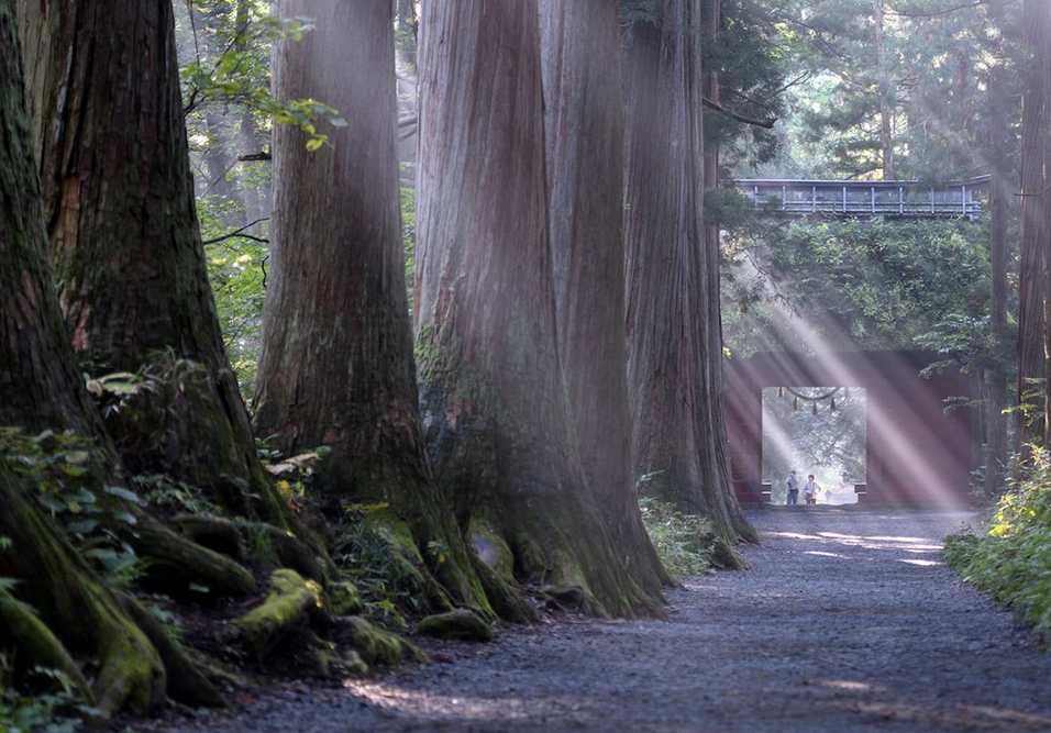 토가쿠시(戸隠)는 나가노시 서쪽에 위치한 토가쿠시 연봉의 중국 묵화(墨畵)와 같은 독특한 산세로 고대부터 영봉으로 추앙받아 왔습니다. 수령 500년 이상의 삼나무가 도열한 참배도의 신비로움은 신화의 이야기 속으로 안내하고, 끝을 알 수 없이 깊고 빼어난 숲의 향기는 걷는 이들에게 치유와 쉼의 은혜로 작용합니다.