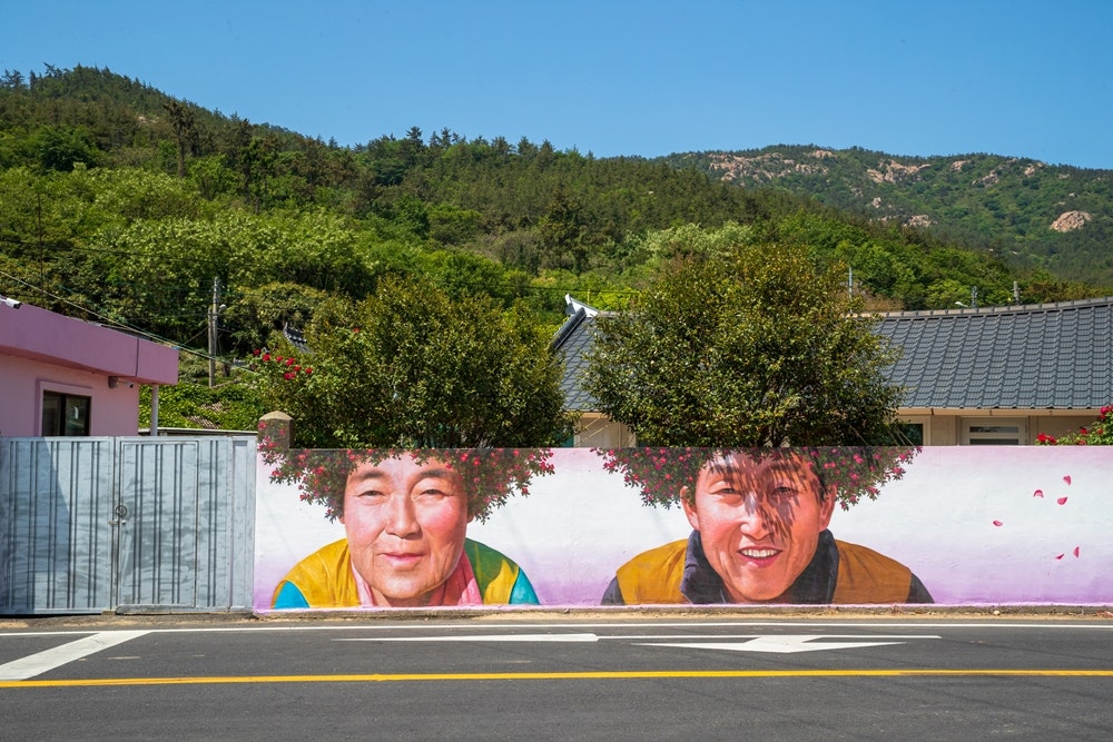 신안의 명물, 기동 삼거리 ‘동백 파마머리’ 벽화