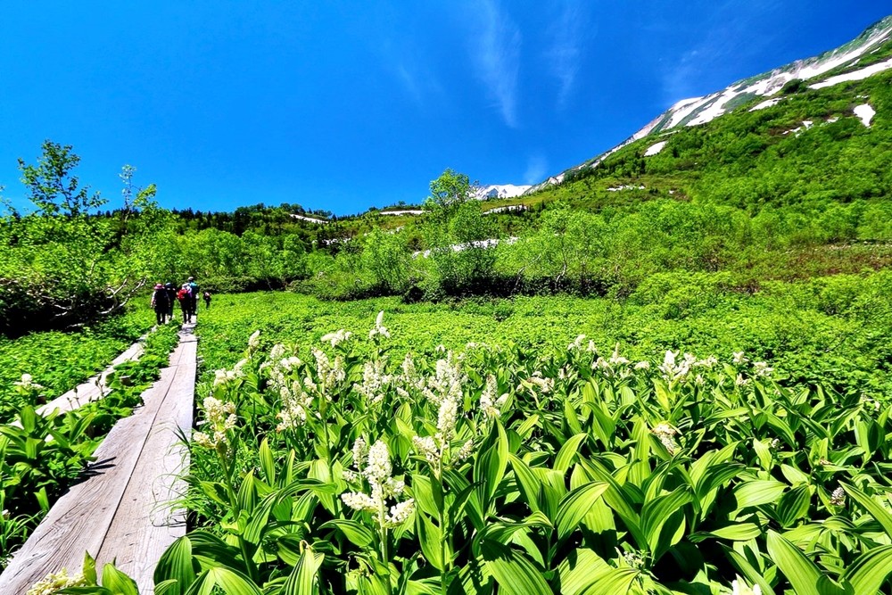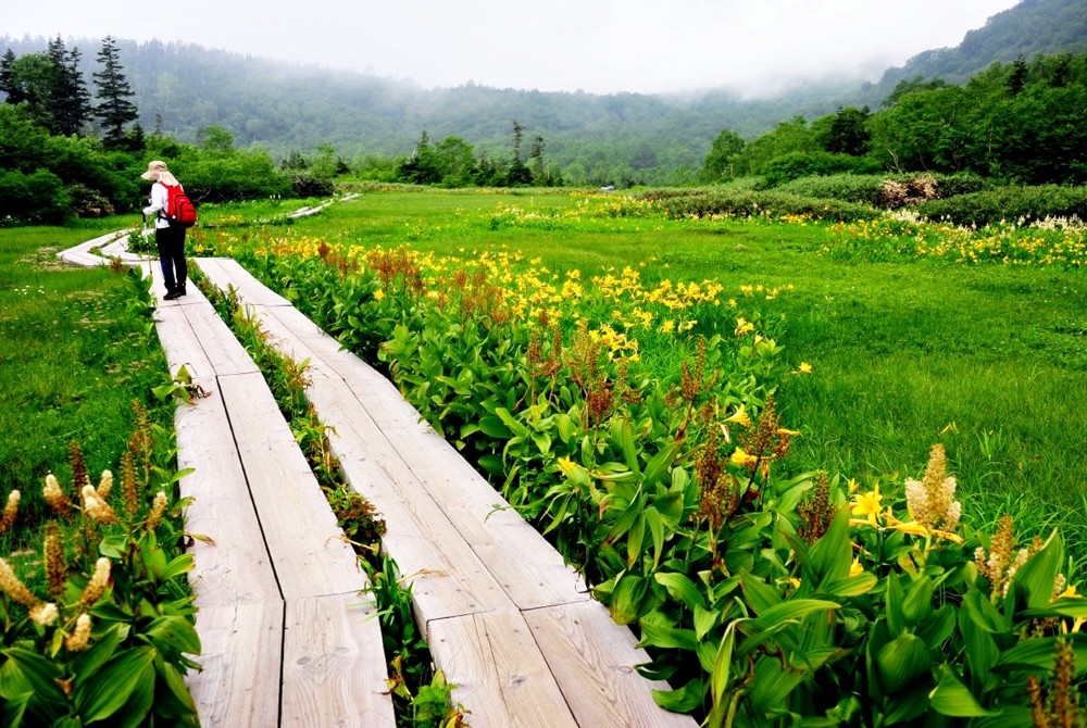 북알프스 연봉과 어깨를 나란히 하며 걷는 맛도 그만이고, 고산지대에 사는 야생화를 찾아보는 재미도 쏠쏠합니다. 특히 7월이 되면 노란 각시원추리꽃이 비단결처럼 펼쳐집니다. 장쾌한 하쿠바 연봉과 습원에 비친 아름다운 풍경에 가슴이 뭉클해집니다. 오랫동안 잊지 못할 대자연의 선물입니다.