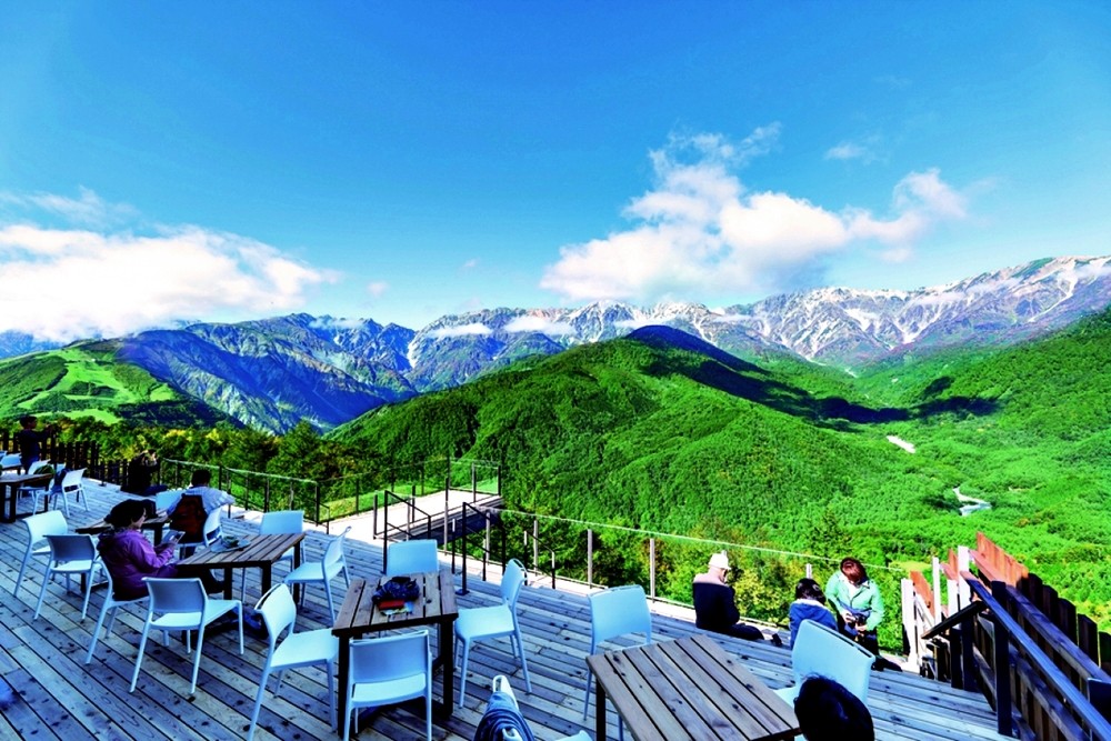 북알프스의 절경을 여유롭게 바라볼 수 있는 이와다케 산정테라스 마운틴하바(HAKUBA MOUNTAIN HARBOR)