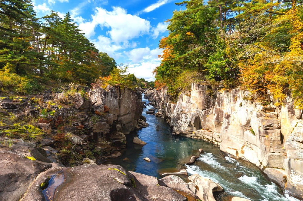 시라카미산지(白神山地)와 함께 일본 최초의 세계자연유산으로 등록된 협곡으로 아오모리현과 아키타현의 경계에 위치한 도와다호수(十和田湖)에서 흘러나온 오이라세강(奥入瀬川)의 상류에 위치해 있습니다. 이 중 계곡의 발원지인 도와다호수의 네노구치(子ノ口)에서 핫코다산 지류와 만나는 야케야마(焼山)에 이르는 약 14km 구간을 오이라세계류(奥入瀬渓流)라고 하는데 5월의 신록을 시작으로 10월말 단풍의 절정에 이르는 순간까지 어느 한 순간도 감동이 반감되지 않습니다.