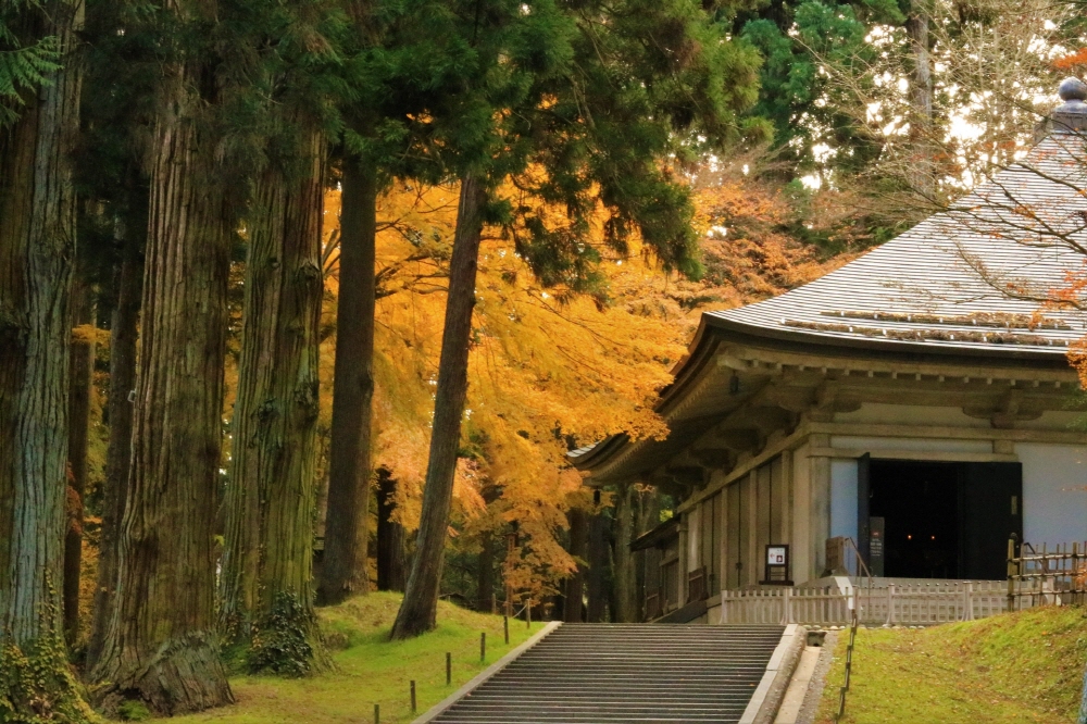 정토 이상 세계를 표현한 헤이안 시대 말기의 정원과 사원을 감상하는 세계유산 히라이즈미(平泉)도 경내 樹木(수목)과 갈대지붕의 이끼가 퇴색하는 가을날이 제격입니다.