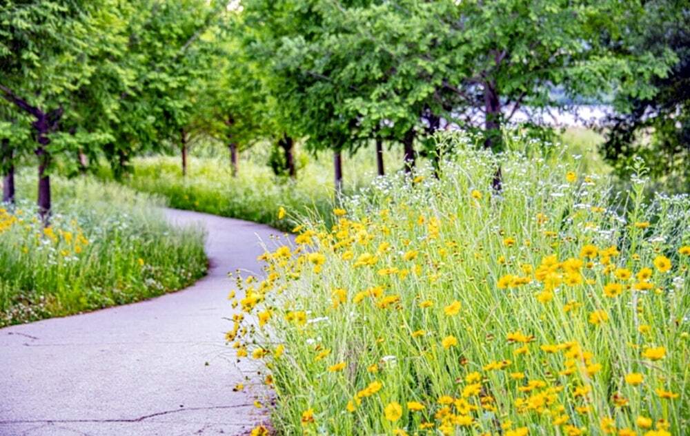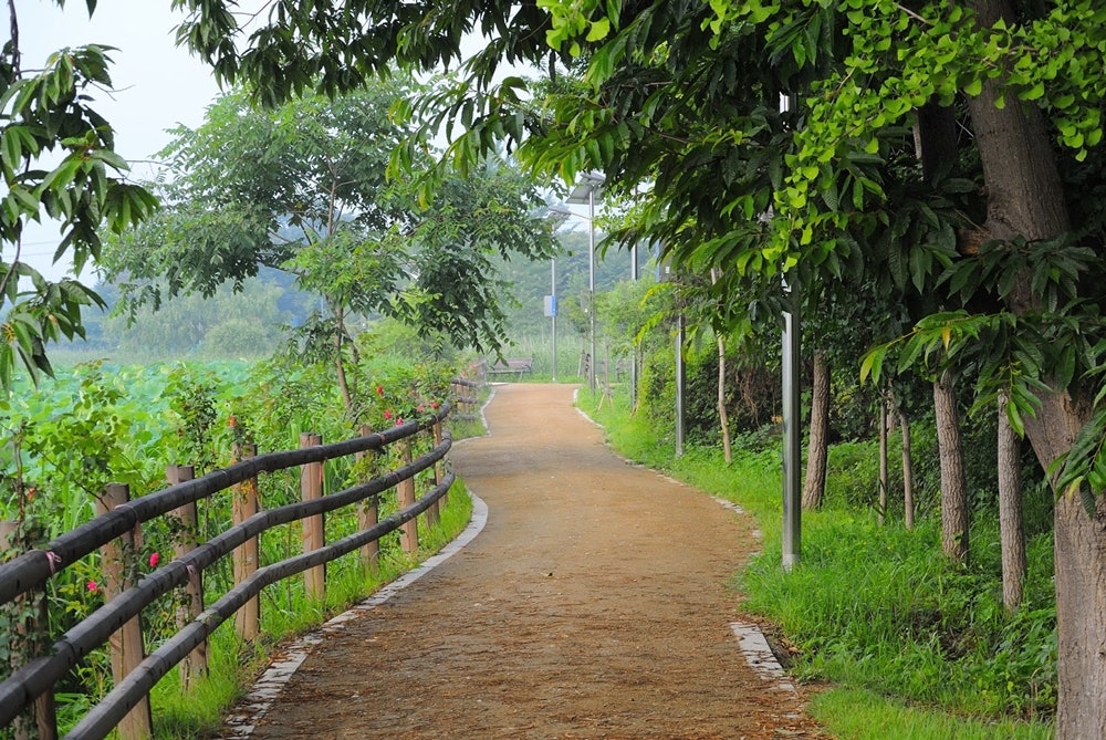 물길과 나무, 그리고 꽃이 어우러진 길