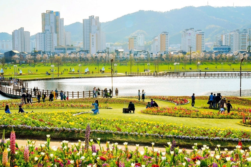 대한민국 1호 순천만국가정원은 봄이면 알록달록한 튤립이 줄지어 피고, 유채는 바람결에 따라 노란 파도를 만듭니다. 우람한 느티나무와 팽나무는 꽃보다 아름다운 신록으로 찬란합니다. 혼자 정원을 거닐어도 지루할 틈 없는 이유입니다.