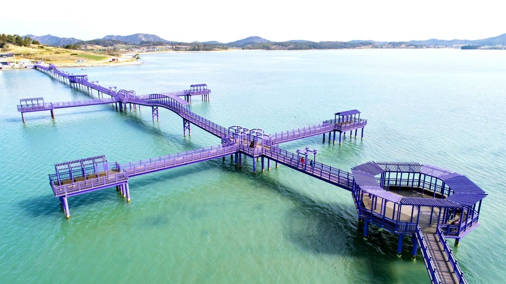 걷는 동안 기분 좋은 소리가 나는 퍼플교(Purple Bridge)는 바다에 기둥을 세워 만든 나무다리입니다. 걸어서 섬을 건너고 싶다는 할머니의 소망이 담긴 소중한 다리입니다. 보라색 다리를 건너면 섬 여기저기 피어있는 보라색 꽃 라벤더와 버들마편초가 보라색 물감을 뿌린 듯 반겨줍니다. 바람의 언덕은 라벤더가 가득 피는 인생 샷 명소입니다. 최근 CNN에서 '사진작가들의 꿈의 섬'이라고 소개 될 정도로 세계가 주목하는 섬이 되었습니다.
